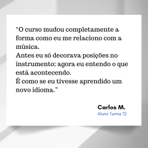 Minha abordagem combina clareza teórica, exemplos práticos e aplicação musical real, para que você entenda não apenas “o que” estudar, mas “por que” cada conceito é importante.. e, principalmente, de uma forma leve buscando que você divirta-se enquanto aprende.
